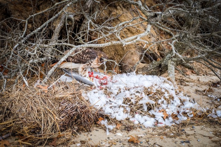 […] recently posted an image from our walk along the beach in Chatham, Massachusetts (see here). It was he who first came across this hawk devouring a seagull just under the cover of light […]