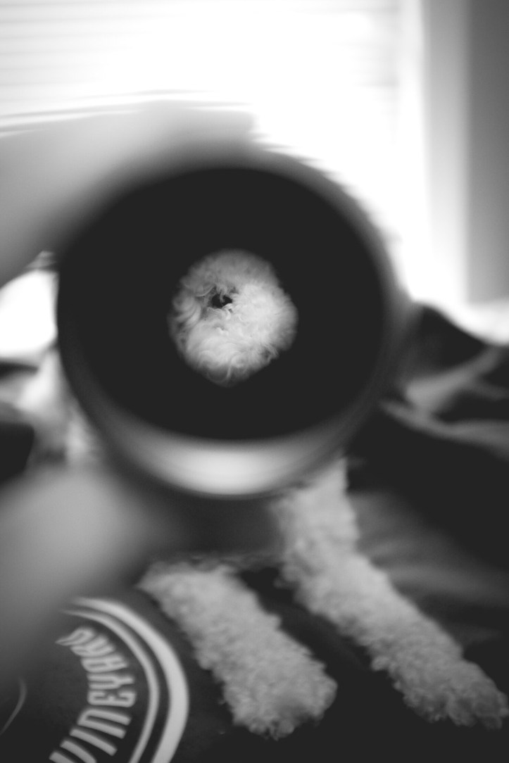 I like this image. It was taken at 35mm but by holding up this 50mm adaptor, Bailey’s eye and a piece of her face were enlarged. So was the image shot at 35mm or 50mm … or a little bit of both?