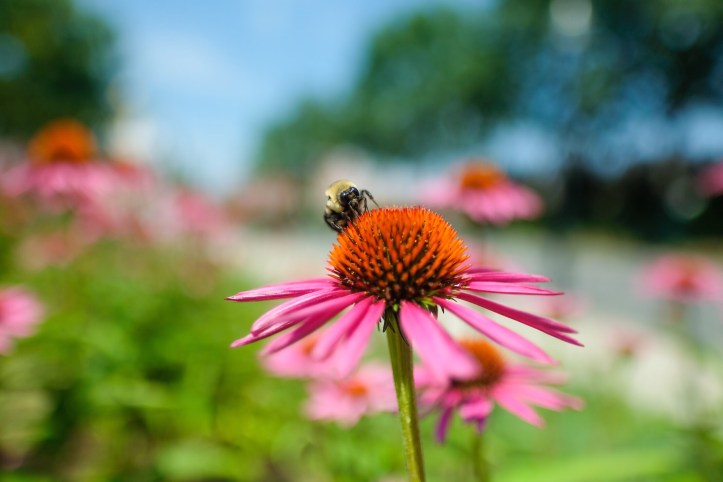 I saw this bee in Boston today. It was a little bit of nature in an urban setting. I added some color and changed the white balance and got this image.