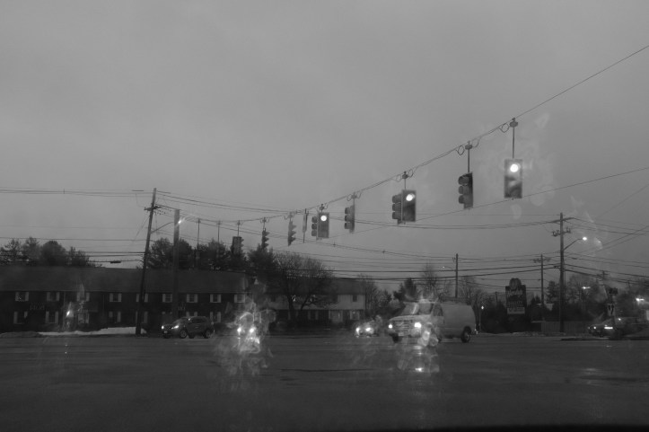 Another lesson learned? The timing and context both matter. We saw brutal cold weather over the past week here followed by a short spell of clear skies, then rainy and blustery (though warmer) days. During the latter, my work schedule precluded hikes or intentional photo quests. You’ll see some through-a-rainy-window images here and, frankly, these I liked better than the others. There’s something nostalgic, subtle, mysterious and Parisienne about them. That could have been the theme instead.
