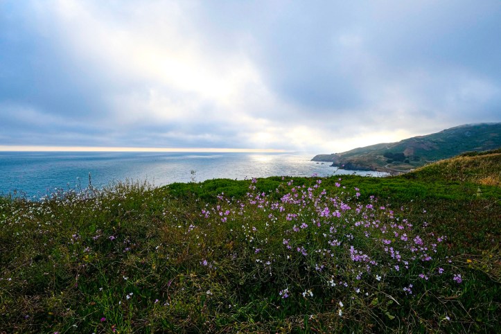 But in turning around to the opposite side, I observed the wild flowers, the settling sun, the stunning light reflected up off the bay.