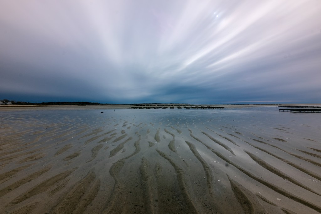 My time was short out on the Flats as my forthcoming surprise visit was pending and the weather was threatening. I took comfort in the fact that the tide was still headed out and my escape to shore was clearly defined. This time out, I had a tripod and neutral density filters, a long-exposure calculator and remote shutter release. Despite the shortage of time, I had an abundance of preparation.