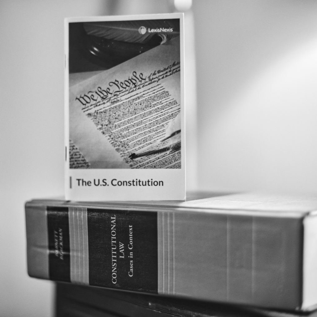 This is a United States Constitutional Law casebook (holds up casebook to the camera). It is quite big. It is quite detailed. It is quite specific. It is a horrifyingly long-winded set of judicial opinions that we use to explain, expand, explore, explode, and explicate our once beautifully concise Constitution, but one could argue that it does not help guide us towards a good life.