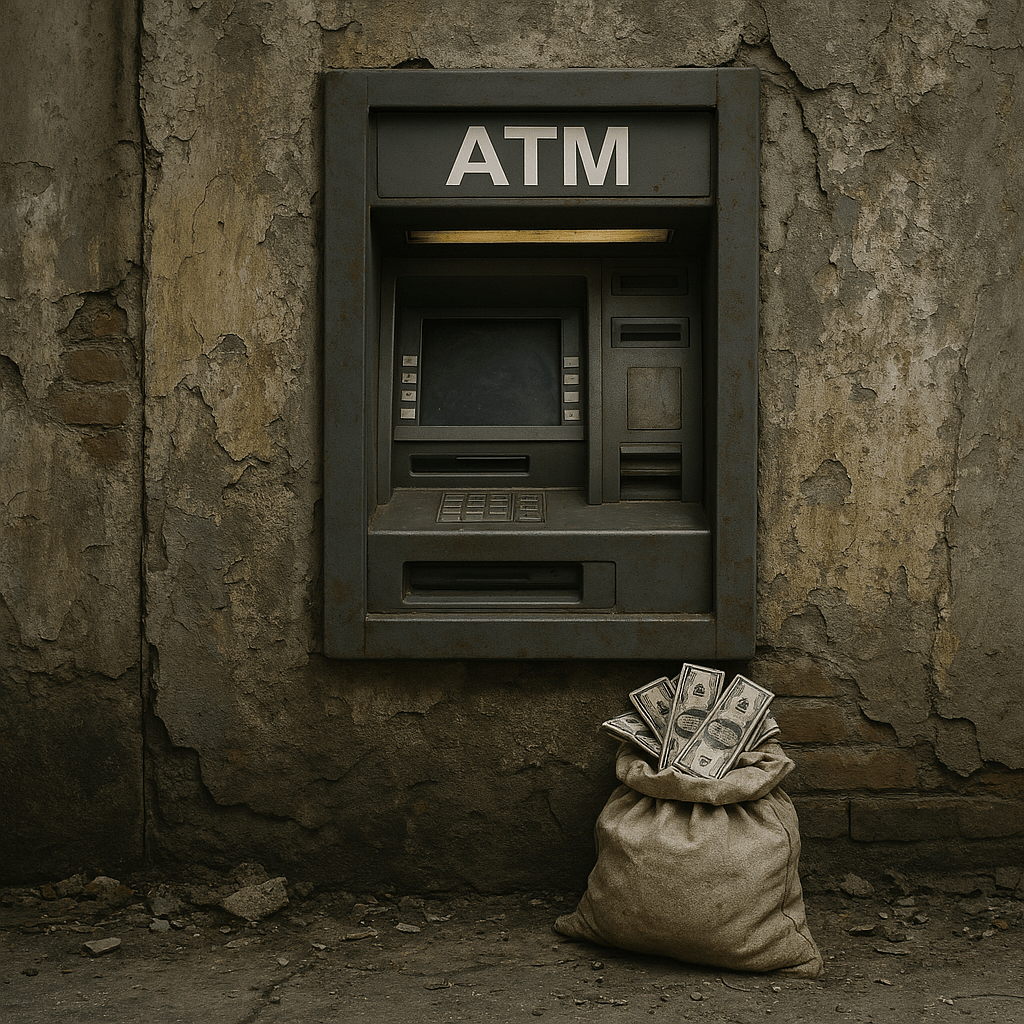 He counted out his money and placed it in his bag. The ATM was flush with cash, he’d recently filled it back up with money from another bank in a surrounding town.